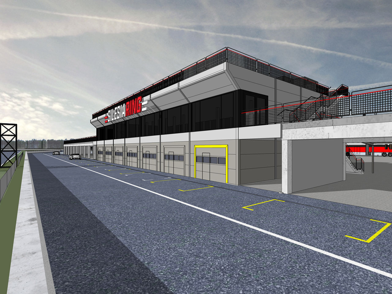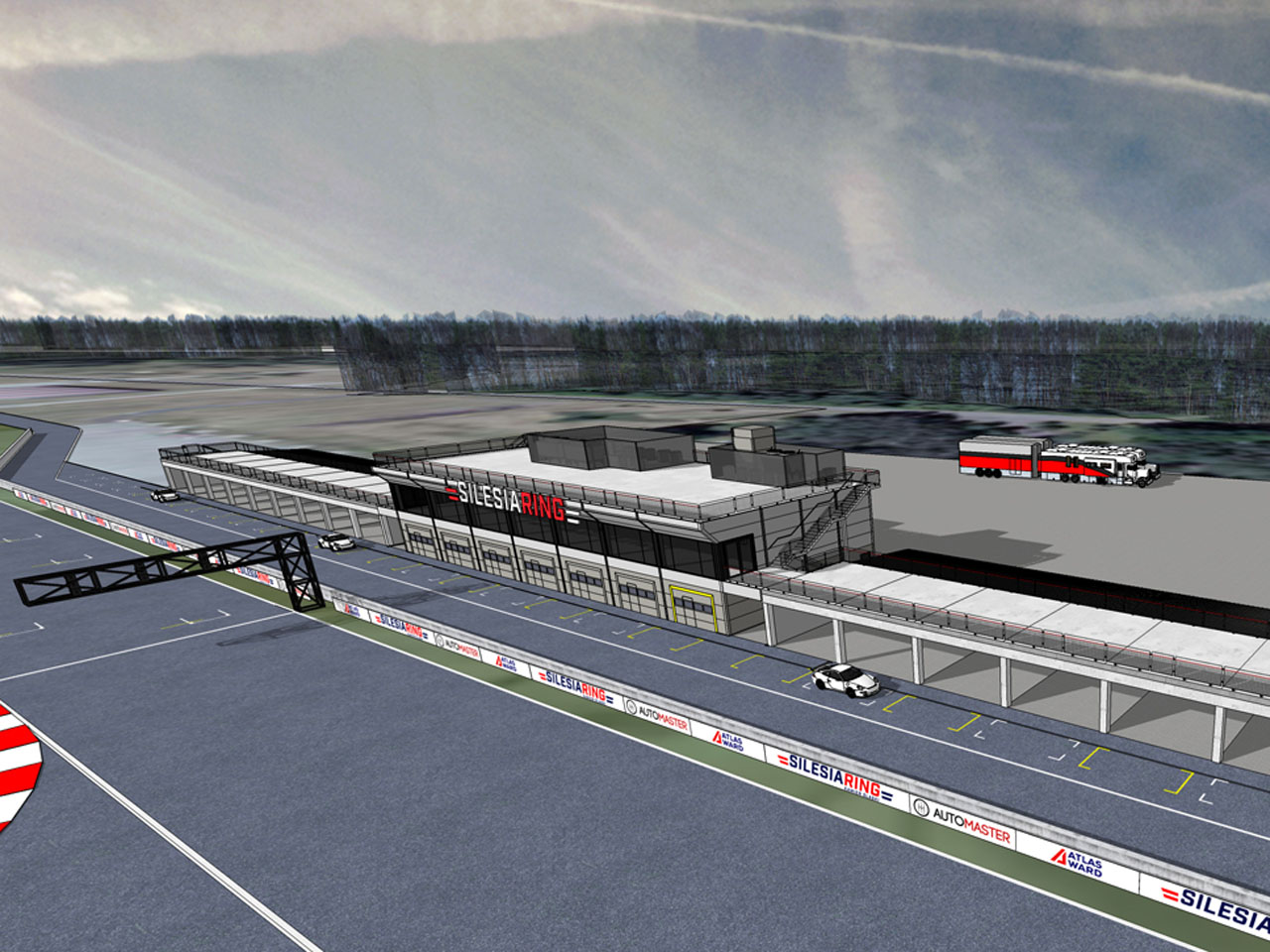 Projekt budynku obsługi toru wyścigowego Silesia Ring w Kamieniu Śląskim.